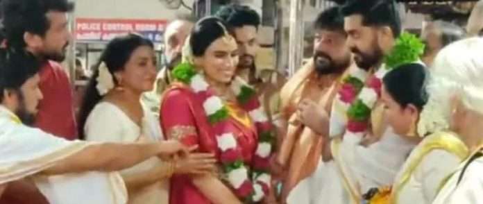 ഗുരുവായൂർ : പ്രമുഖ മലയാള നടൻ ജയറാമിന്റെയും നടി പാര്വതിയുടേയും മകൾ മാളവിക ജയറാം വിവാഹിതയായി. യു.കെയില് ചാര്ട്ടേഡ് അക്കൗണ്ടന്റുമായ നവനീത് ഗിരീഷാണ് വരൻ. പാലക്കാട് സ്വദേശിയാണ് നവനീത്. വെള്ളിയാഴ്ച രാവിലെ ഗുരുവായൂർ അമ്പലത്തിലായിരുന്നു വിവാഹം. അടുത്ത ബന്ധുക്കൾ മാത്രമാണ് വിവാഹത്തിൽ പങ്കെടുത്തത്. ഇന്ന് തൃശൂരിൽ നടക്കുന്ന വിവാഹ സൽക്കാരത്തിൽ മുഖ്യമന്ത്രി പിണറായി വിജയൻ ഉൾപ്പടെ ചലച്ചിത്ര- കലാ-സാംസ്കാരിക രംഗങ്ങളിലെ പ്രമുഖരും പങ്കെടുക്കും.