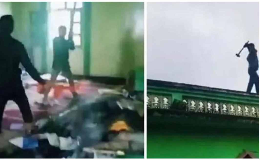 ജയ് ശ്രീ രാം വിളിച്ച് കാവി ഷാള്‍ ധരിച്ചെത്തിയ സംഘം പള്ളിക്ക് മുകളിലെത്തി  ആയുധങ്ങള്‍ ഉപയോഗിച്ച് കെട്ടിടം തകര്‍ക്കുന്നത് ദൃശ്യങ്ങളില്‍ കാണാം. ആക്രമണത്തിന് പിന്നാലെ കേടായ ജനാലകളും കത്തിച്ച ഖുര്‍ആന്‍ പേജുകളും സ്ഥലത്ത് നിന്ന്കണ്ടെടുത്തതായി ദേശീയ മാധ്യമങ്ങള്‍ റിപോര്‍ട്ട് ചെയ്തു. പള്ളിയില്‍ ആളുകളില്ലാത്ത സമയത്താണ് ആക്രമണം നടത്തിയതെന്നാണ്  അറിയുന്നത്.
