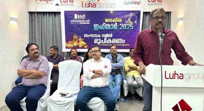 റിയാദ് : കേളി കലാസാംസ്കാരിക വേദിയുടെ ആഭിമുഖ്യത്തിൽ നടക്കുന്ന ജനകീയ ഇഫ്താർ മാർച്ച് 21ന് നടത്തുവാൻ തീരുമാനിച്ചു. ഇഫ്താർ വിജയത്തിനായി വിപുലമായ സംഘാടക സമിതി രൂപീകരിച്ചു. ബത്ത ലുഹ ആഡിറ്റോറിയത്തിൽ വച്ച് നടന്ന സംഘാടക സമിതി രൂപീകരണ യോഗത്തിൽ കേളി പ്രസിഡന്റ് സെബിൻ ഇഖ്ബാൽ അധ്യക്ഷത വഹിച്ചു. ലോക കേരളസഭ അംഗവും കേളി രക്ഷധികാരി സെക്രട്ടറിയുമായ കെപിഎം സാദിഖ് ഉദ്ഘാടനം ചെയ്തു. കേളി സെക്രട്ടറി സുരേഷ് കണ്ണപുരം സംഘാടക സമിതി പാനൽ അവതരിപ്പിച്ചു. രക്ഷധികാരി സമിതി അംഗങ്ങളായ ഷമീർ കുന്നുമ്മൽ, സീബ കൂവോട്, കേളി ജോയിന്റ് സെക്രട്ടറി സുനിൽകുമാർ, വൈസ് പ്രസിഡന്റുമാരായ ഗഫൂർ ആനമങ്ങാട്,രജീഷ് പിണറായി എന്നിവർ ആശംസകൾ അർപ്പിച്ചു സംസാരിച്ചു.