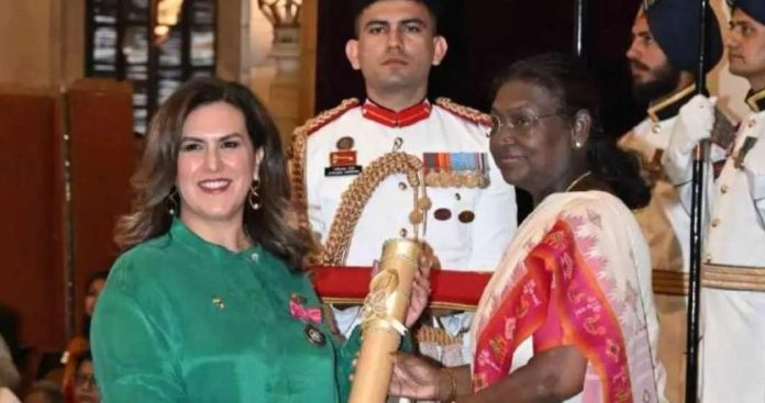 ന്യൂഡൽഹി: കുവൈറ്റ് രാജകുടുംബാംഗം ഷെയ്ഖ അലി അൽ ജാബിറിന് പത്മശ്രീ പുരസ്കാരം സമ്മാനിച്ചു. കുവൈറ്റിൽ യോഗയുടെ പ്രചാരണത്തിന് ഷെയ്ഖ അലി അൽ ജാബിർ അൽ സബാഹ് നൽകിയ സംഭാവനകൾ പരിഗണിച്ചാണ് ഇന്ത്യൻ സർക്കാർ പത്മ ശ്രീ പുരസ്കാരം സമ്മാനിച്ചത്. പത്മശീ പുരസ്കാരം ലഭിക്കുന്ന ആദ്യ കുവൈറ്റ് വനിത കൂടിയാണ് അവർ. രാഷ്ട്രപതി ഭവനിൽ നടന്ന ഔദ്യോഗിക ചടങ്ങിൽ രാഷ്ട്രപതി ദ്രൗപതി മുർമു ഷെയ്ഖ അലി അൽ ജാബിറിന് പുരസ്കാരം സമ്മാനിച്ചു.