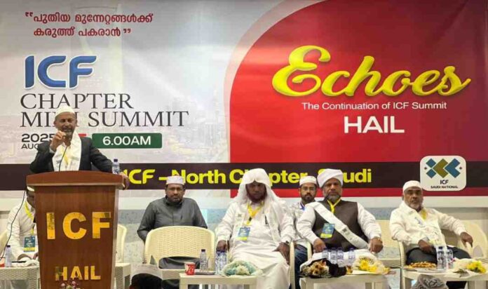 നോർത്ത് ചാപ്റ്റർ മിനി സമ്മിറ്റ് വെള്ളിയാഴ്ച രാവിലെ ഏഴ് മണിക്ക് ഹായിലിൽ ഐസിഎഫ് നാഷണൽ സെക്രട്ടറി അബൂസാലിഹ് മുസ്ലിയാർ ഉൽഘാടനം ചെയ്തു. ഹമീദ് സഅദി അധ്യക്ഷത വഹിച്ചു. ഇന്റർനാഷണൽ നേതാക്കളായ ഉസ്മാൻ സഖാഫി തിരുവത്ര, ഷരീഫ് കാരശ്ശേരി, അബ്ദുൽ റഷീദ് സഖാഫി മുക്കം, ബഷീർ ഹുസൈൻ എറണാകുളം വിവിധ സെഷനുകൾക്ക് നേതൃത്വം നൽകി. ഹക്കീം പൊൻമള സ്വാഗതവും ശറഫുദ്ധീൻ വാണിയമ്പലം നന്ദിയും പറഞ്ഞു.