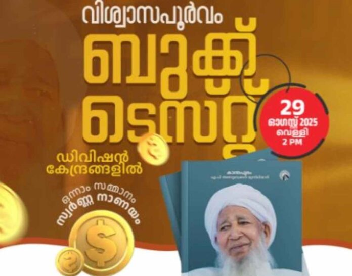റിയാദ്: ഇന്ത്യൻ ഗ്രാന്റ് മുഫ്തി കാന്തപുരം എ പി അബൂബക്കർ മുസ്ലിയാരുടെ ആത്മകഥ ‘വിശ്വാസപൂർവം’ അടിസ്ഥാനമാക്കി ഐ സി എഫ് പബ്ലിക്കേഷൻ ഡിപ്പാർട്മെന്റ് ഇന്റർനാഷനൽ തലത്തിൽ നടത്തുന്ന ബുക്ക് ടെസ്റ്റ് സൗദിയിൽ നാളെ നടക്കും. ആഗസ്റ്റ് 29, 30 ദിതിയ്യതികളിലായി വിവിധ രാജ്യങ്ങളിലെ നൂറിലധികം കേന്ദ്രങ്ങളിലാണ് ടെസ്റ്റ് നടക്കുക.