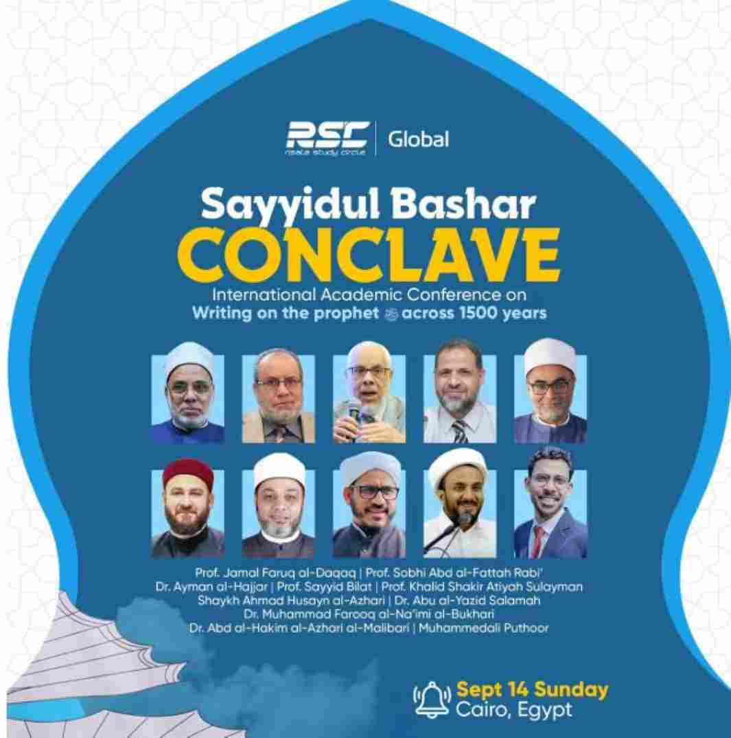 ഈജിപ്ത്: മുഹമ്മദ് നബി(സ്വ)യുടെ ആയിരത്തി അഞ്ഞൂറാം ജന്മദിനത്തോടനുബന്ധിച്ച് രിസാല സ്റ്റഡി സര്ക്കിള് (ആര് എസ് സി) ഈജിപ്തിൽ അന്താരാഷ്ട്ര മീലാദ് കോണ്ക്ലേവ് സംഘടിപ്പിക്കുന്നു. ഞായറാഴ്ച രാവിലെ ആരംഭിക്കുന്ന സയ്യിദുൽ ബഷർ കോണ്ക്ലേവിൽ ലോകത്തിന്റെ വിവിധ ഭാഗങ്ങളില് നിന്നുള്ള പണ്ഡിതരും വിദ്യാര്ഥികളും പങ്കെടുക്കും.