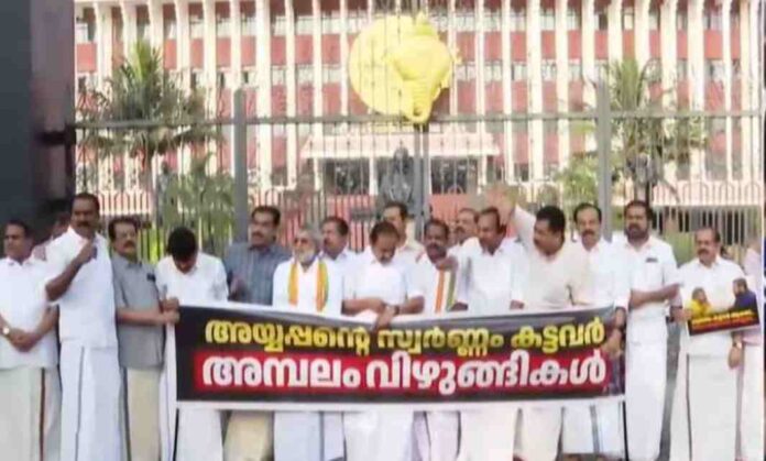 ശബരിമല സ്വർണ്ണക്കൊള്ള; അന്വേഷണം അട്ടിമറിക്കുന്നുവെന്ന് ആരോപിച്ച് സഭക്ക് അകത്തും പുറത്തും പ്രതിഷേധം