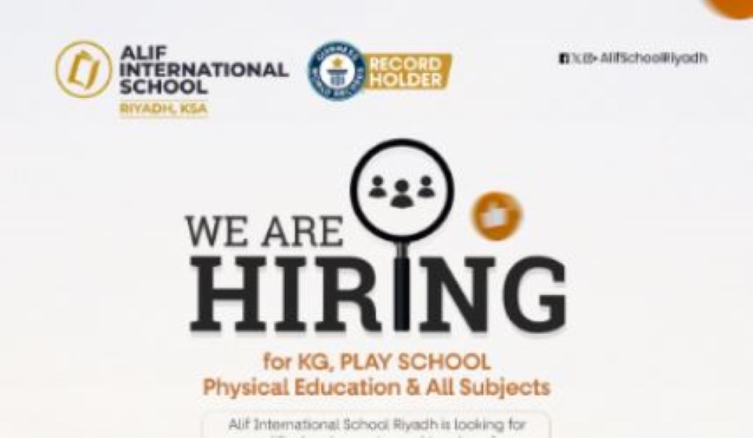 റിയാദ്: റിയാദിലെ പ്രമുഖ സിബിഎസ്ഇ വിദ്യാഭ്യാസ സ്ഥാപനമായ അലിഫ് ഇന്റർനാഷണൽ സ്‌കൂളിൽ വിവിധ തസ്തികകളിലേക്ക് അധ്യാപകരെ തേടുന്നു. കിന്റർഗാർഡൻ, പ്ലേ സ്‌കൂൾ എന്നിവയ്ക്ക് പുറമെ കായിക അധ്യാപകരുടെയും ഒന്നാം ക്ലാസ് മുതൽ പത്താം ക്ലാസ് വരെയുള്ള വിഭാഗങ്ങളിലുമാണ് ഒഴിവുകളുള്ളത്. പ്രധാനപ്പെട്ട എല്ലാ വിഷയങ്ങളിലും പ്രാവീണ്യമുള്ള അധ്യാപകരെയാണ് വിദ്യാലയം ലക്ഷ്യമിടുന്നത്. ഇംഗ്ലീഷിൽ നൈപുണ്യമുള്ളവർക്കും പ്രവൃത്തിപരിചയമുള്ള ഉദ്യോഗാർഥികൾക്കും ഈ അവസരം പ്രയോജനപ്പെടുത്താം.