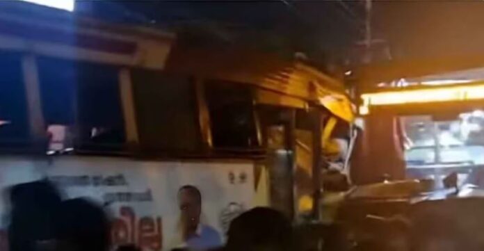തൃശൂർ: കുന്നംകുളം ജംക്ഷനിൽ രണ്ട് കെഎസ്ആർടിസി ബസുകൾ കൂട്ടിയിടിച്ച് ഇരുപതിലേറെ യാത്രക്കാർക്ക് പരിക്കേറ്റു. ശനിയാഴ്ച രാത്രി 10.30 ഓടെയായിരുന്നു അപകടം. കോഴിക്കോട്–ചെങ്ങന്നൂർ റൂട്ടിലോടുന്ന ബസിനു പിന്നിൽ കോഴിക്കോട്–തിരുവനന്തപുരം ബസ് ഇടിച്ചുകയറുകയായിരുന്നു. പരിക്കേറ്റ ആരുടെയും നില നിലവിൽ ഗുരുതരമല്ലെന്നാണ് ആശുപത്രി അധികൃതർ നൽകുന്ന വിവരം.