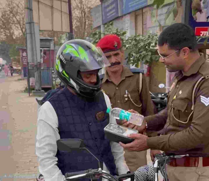 ലക്നൗ: ഉത്തർപ്രദേശിലെ മുസാഫർനഗറിൽ നിയമപാലനത്തിനിടയിൽ പോലീസ് ഓഫീസർ അശ്വനികുമാർ കാണിച്ച കാരുണ്യത്തിന്റെ കഥ സോഷ്യൽ മീഡിയയിൽ തരംഗമാകുന്നു. പതിവ് വാഹന പരിശോധനയ്ക്കിടയിൽ ഹെൽമെറ്റ് ധരിക്കാതെ എത്തിയ ബൈക്ക് യാത്രക്കാരനെ അശ്വനികുമാർ തടഞ്ഞു നിർത്തി ധരിക്കാൻ ഹെൽമറ്റും റംസാൻ കിറ്റും നൽകുകയായിരുന്നു.