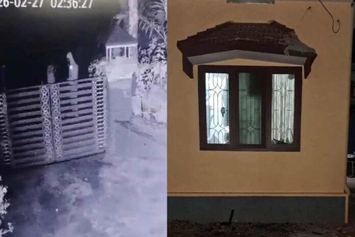 കോഴിക്കോട്: ആരോഗ്യ മന്ത്രി വീണാ ജോർജിനെതിരായ പ്രതിഷേധത്തിൽ പങ്കെടുത്ത കെഎസ്യു കോഴിക്കോട് ജില്ലാ സെക്രട്ടറി ബിതുൽ ബാലന്റെ വീടിന് നേരെ ബോംബേറ്. കോഴിക്കോട് തോടന്നൂരിലെ വീടിന് നേരെ ഇന്ന് പുലർച്ചെ രണ്ട് മണിയോടെയാണ് ആക്രമണമുണ്ടായത്. മുഖംമൂടി ധരിച്ചെത്തിയ മൂന്ന് പേർ ബോംബെറിയുന്നതിന്റെ സിസിടിവി ദൃശ്യങ്ങൾ പുറത്തുവന്നിട്ടുണ്ട്. ആക്രമണത്തിൽ വീടിന്റെ ജനാലച്ചില്ലുകൾ തകർന്നു. മന്ത്രിയെ പ്രതിഷേധിച്ചതിന്റെ പ്രതികാരമായി ഡിവൈഎഫ്ഐ-എസ്എഫ്ഐ പ്രവർത്തകരാണ് ഇതിന് പിന്നിലെന്ന് ബിതുലിന്റെ കുടുംബം ആരോപിച്ചു. നിലവിൽ റിമാൻഡിലുള്ള ബിതുലിന്റെ വീടിന് നേരെയുണ്ടായ ആക്രമണത്തിൽ പോലീസ് അന്വേഷണം തുടങ്ങിയിട്ടുണ്ട്.