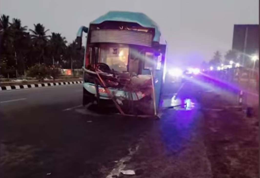 ബെംഗളൂരുവിന് സമീപം സ്വകാര്യ ബസ് റെയിലിങ്ങിൽ ഇടിച്ചുകയറി അപകടം; നാല് മലയാളികൾ മരിച്ചു