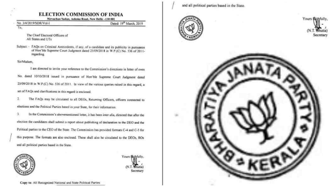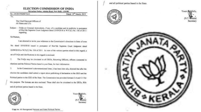 തിരുവനന്തപുരം: കേരളത്തിൽ തിരഞ്ഞെടുപ്പ് നടപടികൾക്കിടെ ബിജെപിയുടെ ചിഹ്നമുള്ള സീൽ മാറി നൽകിയ സംഭവത്തിൽ ഉത്തരവാദിയായ ഉദ്യോഗസ്ഥനെതിരെ കർശന നടപടി. ഗുരുതരമായ വീഴ്ച സംഭവിച്ചതായി കണ്ടെത്തിയതിനെത്തുടർന്ന് ബന്ധപ്പെട്ട തിരഞ്ഞെടുപ്പ് ഉദ്യോഗസ്ഥനെ സർവീസിൽ നിന്നും സസ്പെൻഡ് ചെയ്തു. ഔദ്യോഗിക കൃത്യനിർവ്വഹണത്തിൽ പുലർത്തേണ്ട ജാഗ്രതയിൽ വീഴ്ച വരുത്തിയതിനാണ് നടപടി. വോട്ടെടുപ്പ് സാമഗ്രികളുടെ വിതരണത്തിനിടെയായിരുന്നു വിവാദമായ സംഭവം നടന്നത്.