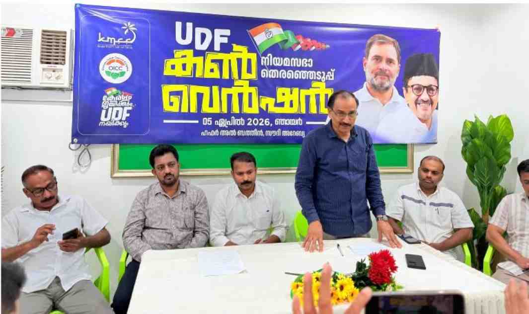 ഹഫർ അൽ ബാത്തീൻ: സൗദി അറേബ്യയിലെ ഹഫർ അൽ ബാത്തീനിൽ കെ എം.സി.സി യും ഒ.ഐ.സി.സി യും സംയുക്തമായി യുഡിഎഫ് തിരഞ്ഞെടുപ്പ് കൺവെൻഷൻ സംഘടിപ്പിച്ചു. ഒ.ഐ.സി.സി പ്രസിഡന്റ് വിബിൻ മറ്റത്തിന്റെ അധ്യക്ഷതയിൽ ചേർന്ന കൺവെൻഷൻ, ഹഫർ അൽ ബാത്തീൻ കെ.എം.സി.സി രക്ഷാധികാരി അബ്ദുള്ള പരിയാരം ഉദ്ഘാടനം ചെയ്തു. കെഎംസിസി സെക്രട്ടറി ഫൈസൽ മാഷ് സ്വാഗതം ആശംസിച്ചു.
