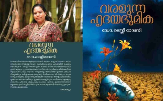 ദമ്മാം: പ്രമുഖ പ്രവാസി എഴുത്തുകാരി ഡോ. ടെസ്സി റോണിയുടെ പുതിയ കവിതസമാഹാരമായ വരളുന്ന ഹൃദയഭൂമികയുടെ പ്രകാശന കർമ്മം ഏപ്രിൽ 9-ന് വ്യാഴാഴ്ച്ച രാത്രി 8 മണിക്ക് ദമ്മാം റോസ് ഗാർഡൻ റെസ്റ്റോറന്റ് ഓഡിറ്റോറിയത്തിൽ നടക്കും. ദമ്മാം സാംസ്‌കാരിക വേദിയുടെ ആഭിമുഖ്യത്തിലാണ് പരിപാടി സംഘടിപ്പിക്കുന്നത്.